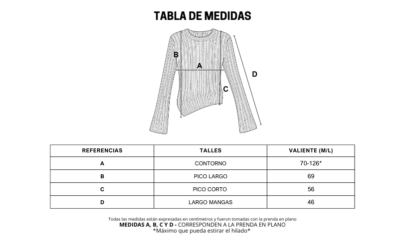👉El hilo es súper adaptable. Tené en cuenta, que las medidas están tomadas sobre la prenda en plano.
